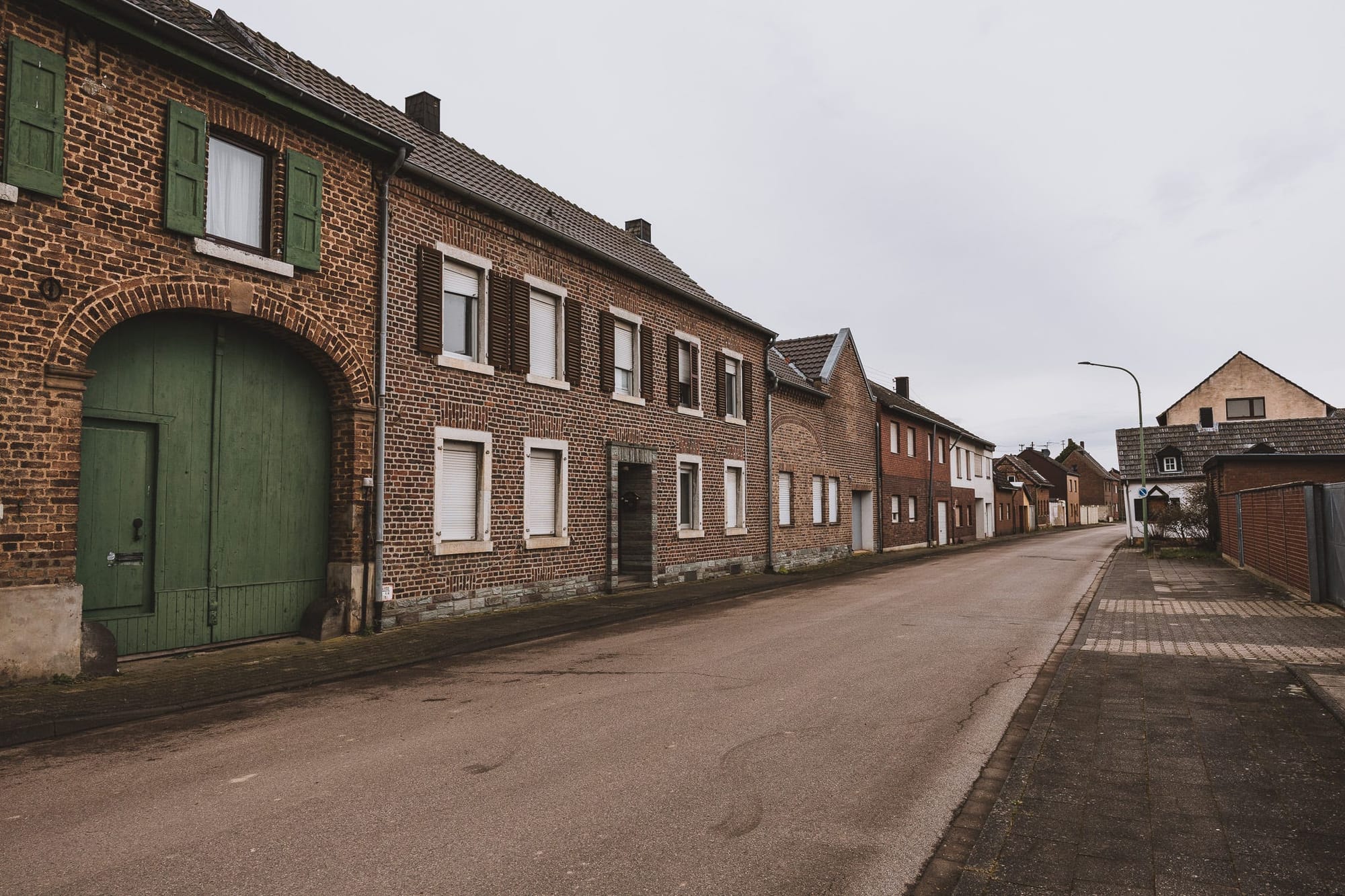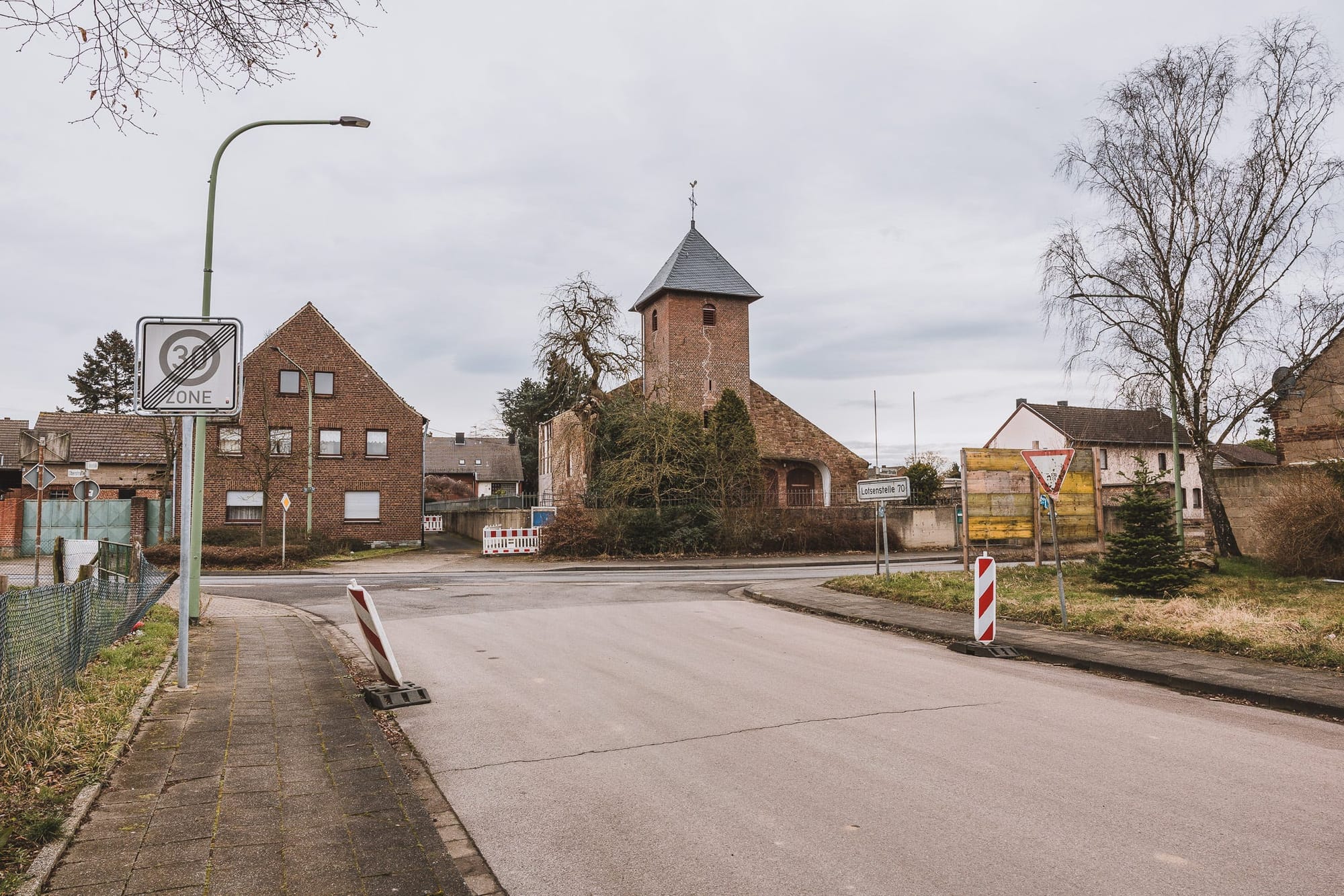 Morschenich war für den Tagebau Hambach vorgesehen. Ab 2015 siedelten die rund 500 Einwohner in ein neues Dorf wenige Kilometer südlich um — Häuser, Infrastruktur, Gemeindeleben. Was zurückblieb, wartete auf den Abriss.
